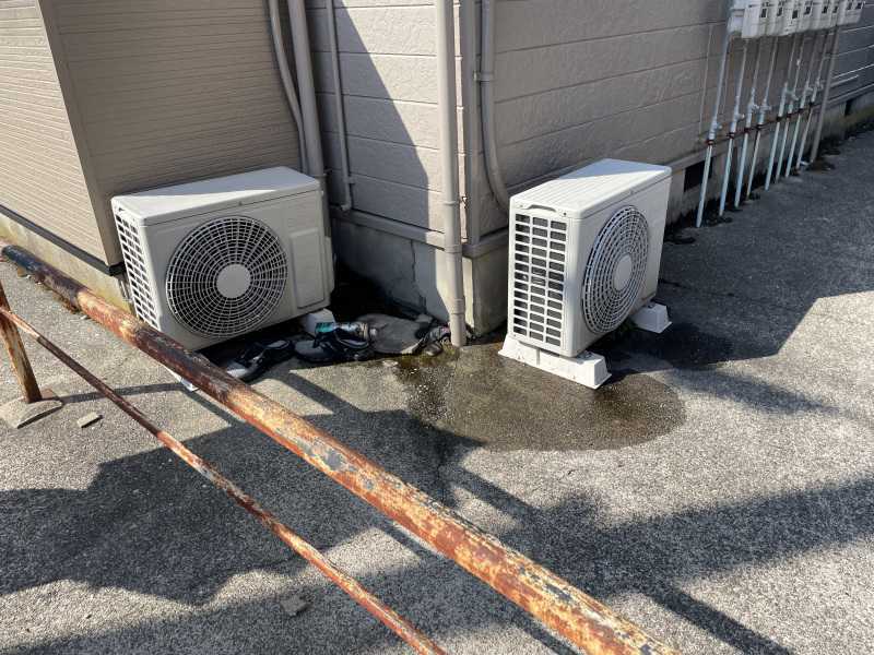 異音を発し続ける室外機があった。モーターのブラシが歪んでいるかのような音がする。この季節の室外機の動作音は、中に人がいるかどうかを、外に否応なく知らせてしまう。しかし、室外機を地面に直置きすると、輻射熱で簡単に壊れてしまいそうだ。