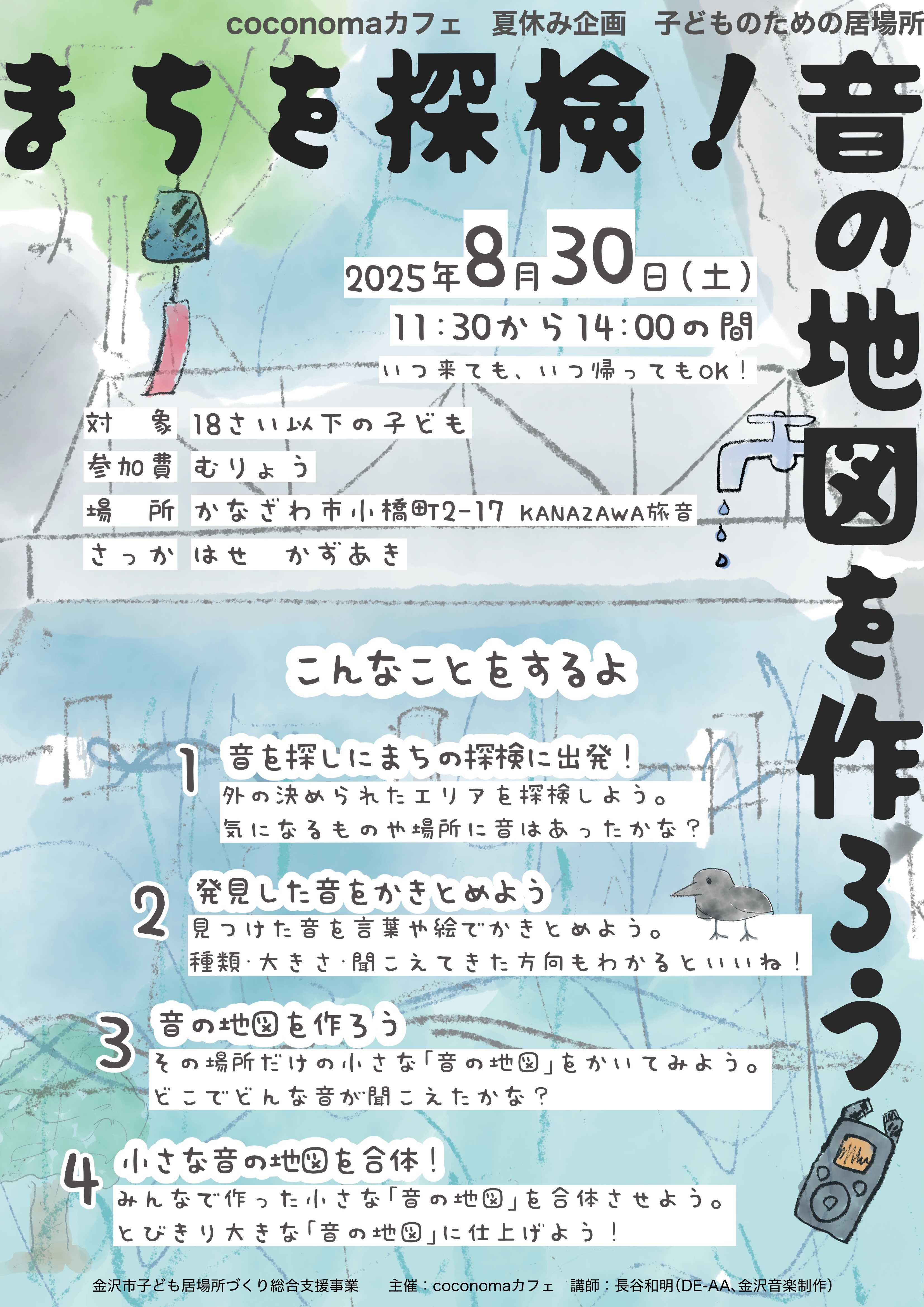 このワークショップは、2025年8月31日、「coconomaカフェ 夏休み企画 子どものための居場所」の一環として開催されました。本事業は、金沢市の子ども居場所づくり総合支援事業の一環として実施されたものです。