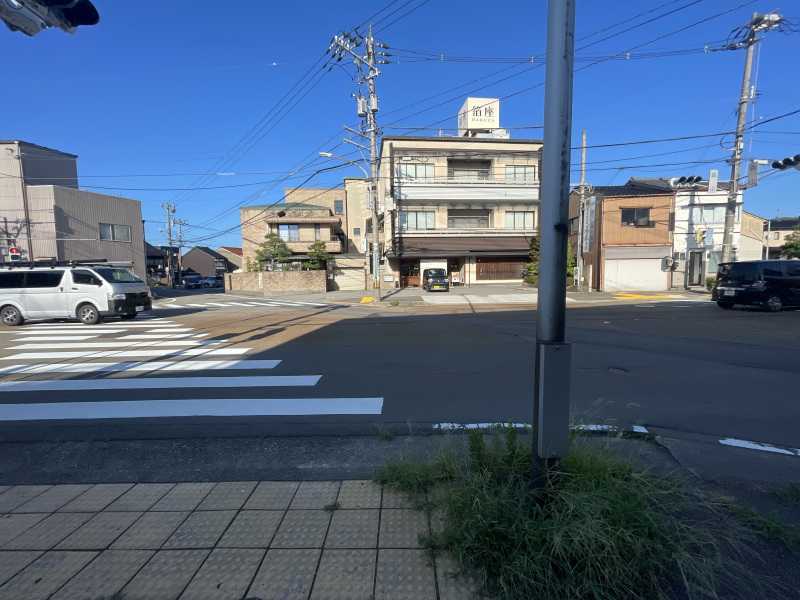 彦三、山の上、馬場、浅野本町の道が交わる、小さな交差点――森山交差点。近くにはコンビニやバス停があり、市民の足であるフラットバスが走っている。奥には広見が見え、さらに進むと、あめや坂を登って城北大通りへとつながる。すぐ隣には、より大きな森山北交差点がある。地図を見るかぎり、森山交差点の方が古くからあるようだ。