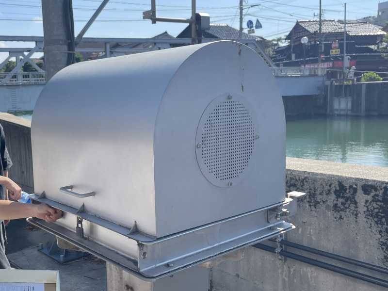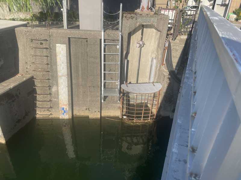小橋のすぐ脇にある庭から、「ジ・ジジジ」とアブラゼミの鳴き声が聞こえてくる。そういえば、今日はあまりの暑いためか、セミの声をほとんど耳にしなかった。この場所は川沿いにあるうえ、小橋の可動堰も近くにある。他の場所よりも涼しいのかもしれない。