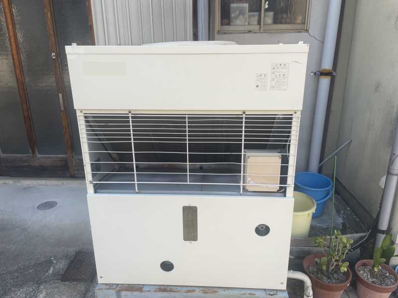 「ブォォー」、大量の空気を送り出す音が聞こえてきた。どうやら、歯科医院に設置された室外機のような装置が発しているらしい。近くで見ると、一般的によく見かける室外機とは、少し異なる形状をしている。全館空調をこの一台でまかなっているのか、それともまったく別の目的で使われているものなのか。想像が広がる。
