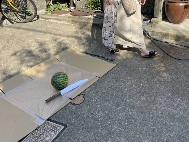 ココノマの方から歓声が聞こえてきた。スイカ割りが始まるようだ。スイカ割りは、目隠しをして木の棒を持ち、他人の指示で移動しながらスイカめがけて棒を振り下ろす遊びだ。もちろん、割ったスイカはみんなで食べる。このときは、スイカの硬さに棒が負けて、逆に折れてしまった。その瞬間、歓声はやがて笑い声に変わり、楽しげな空気が広がっていった。